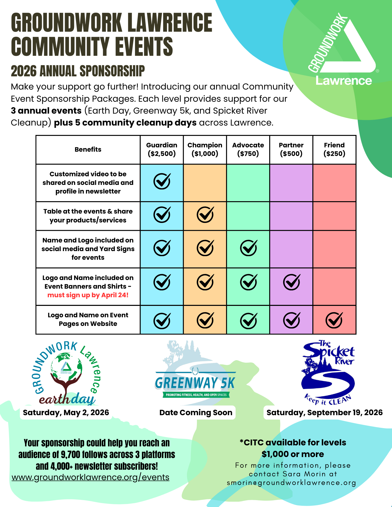 For more information, to learn about CITC, or for support with your sponsorship request, please contact Sara Morin, Development and Communications Director at (978) 974-0770 ext. 7011 or at smorin@groundworklawrence.org.
